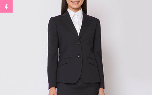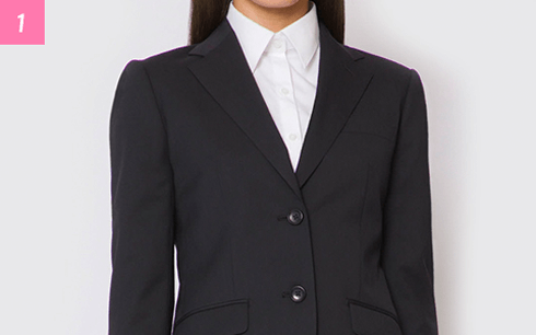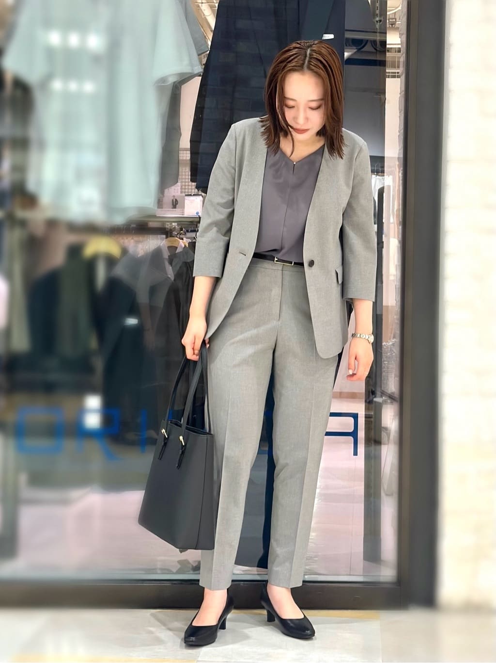 どんなTPOにも着まわせるノッチジャケットにクロップドのスマートパンツを合わせたきれいめなオトナスタイル。入社後のお仕事着として長く着用頂けます。ジャケットは襟が無いノーカラータイプ、ボトムスはスカートも展開。複数で「着まわし」を楽しめます。